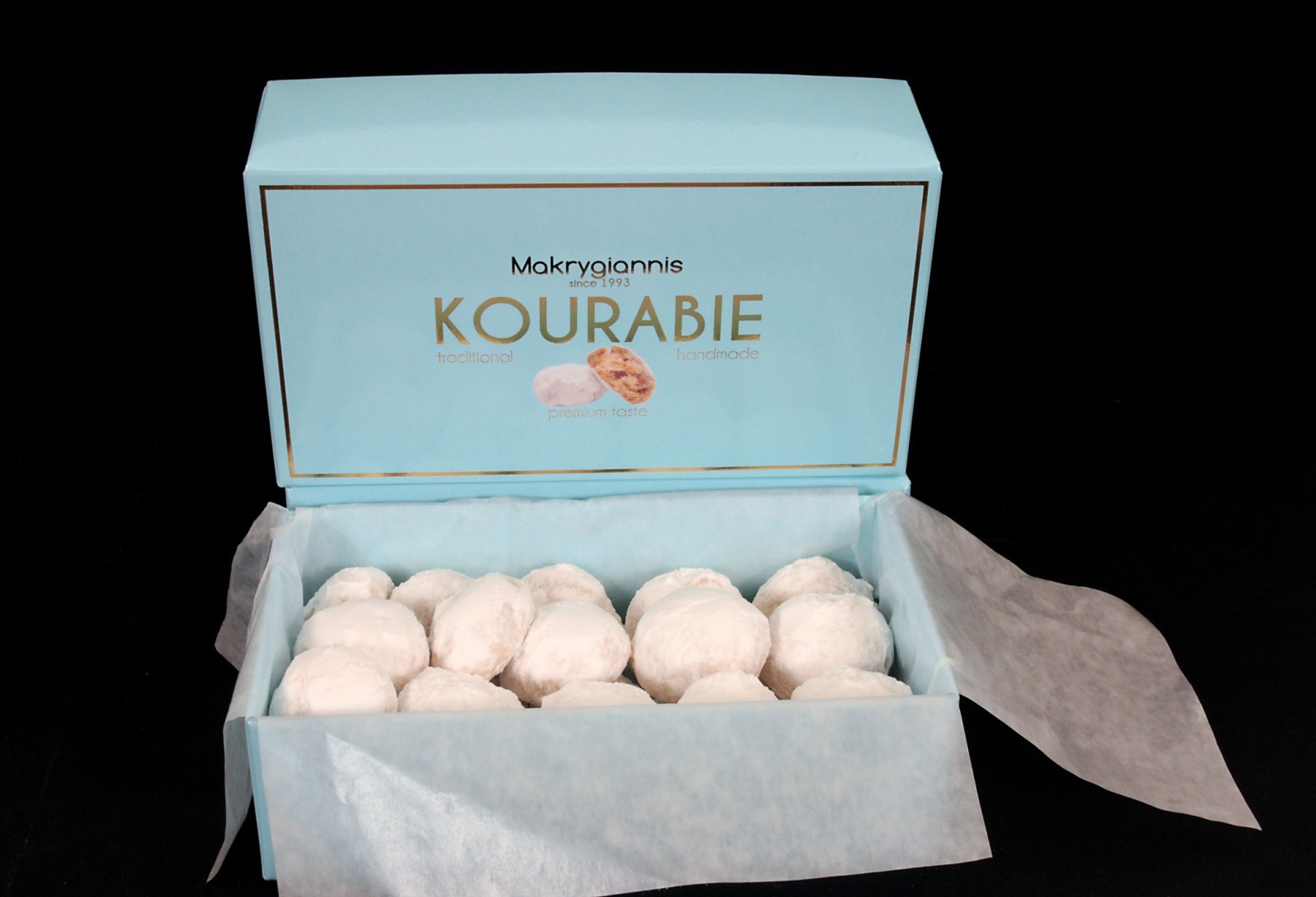 Η παραγωγή των κουραμπιέδων μας, αποτελεί μια διαδικασία μαγείας. Ξεκινώντας με τα πιο αγνά υλικά, επιλέγουμε το καλύτερο φρέσκο ελληνικό βούτυρο γάλακτος, αμύγδαλο, αλεύρι για να ετοιμάσουμε την ζύμη του κουραμπιέ. Στη συνέχεια, η ζύμη πλάθεται με το χέρι σε μικρές μπουκιές πριν φτάσουν στο στάδιο του ψησίματος και ψήνονται μέχρι να αποκτήσουν το τέλειο χρυσό χρώμα τους. Τέλος αχνίζονται, συσκευάζονται σε μια ανάλογη ποιότητας συσκευασία, όπως οι πρώτες ύλες που χρησιμοποιούνται για την παρασκευή τους και είναι έτοιμοι για να τους απολαύσετε, αφήνοντας στον ουρανίσκο σας μια πρωτόγνωρη πλούσια γεύση που συνδυάζει παράδοση και παιδικές οικογενειακές μνήμες.